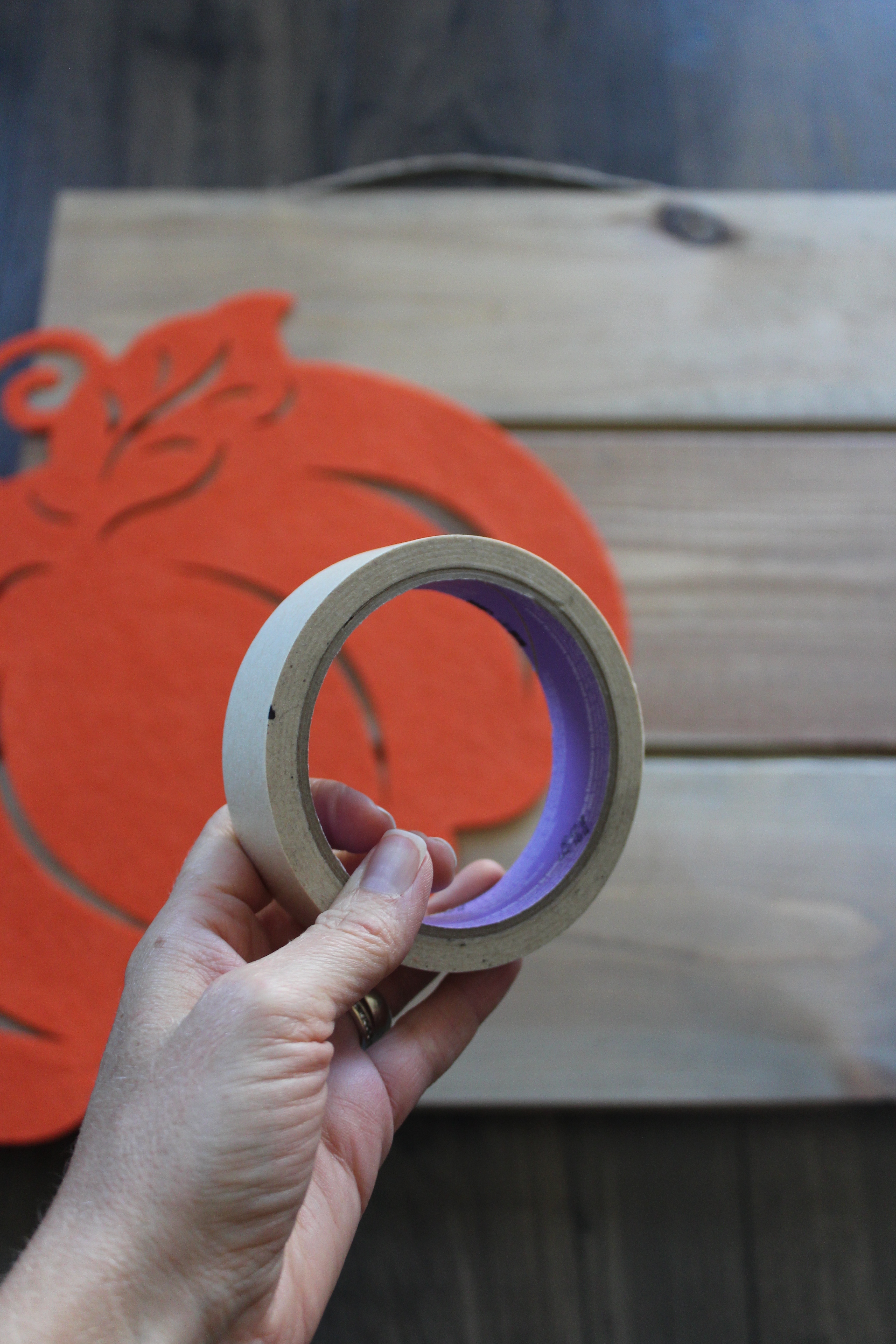 Since my pallet board was not very rough I took some tape to secure my pumpkin in place and keep it all centered and even.