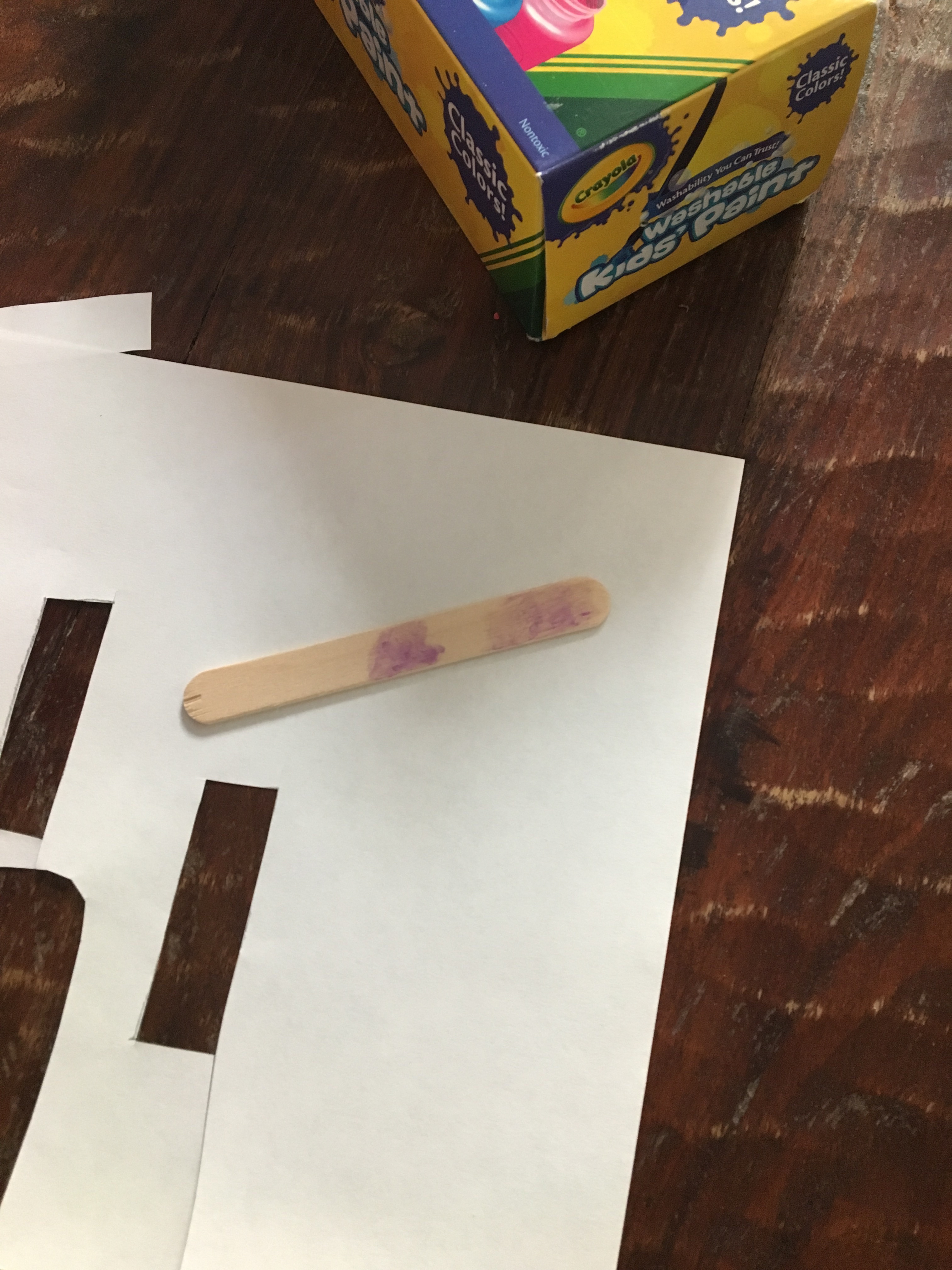 Then take your glue stick and put some glue on the top and middle of your popsicle stick.