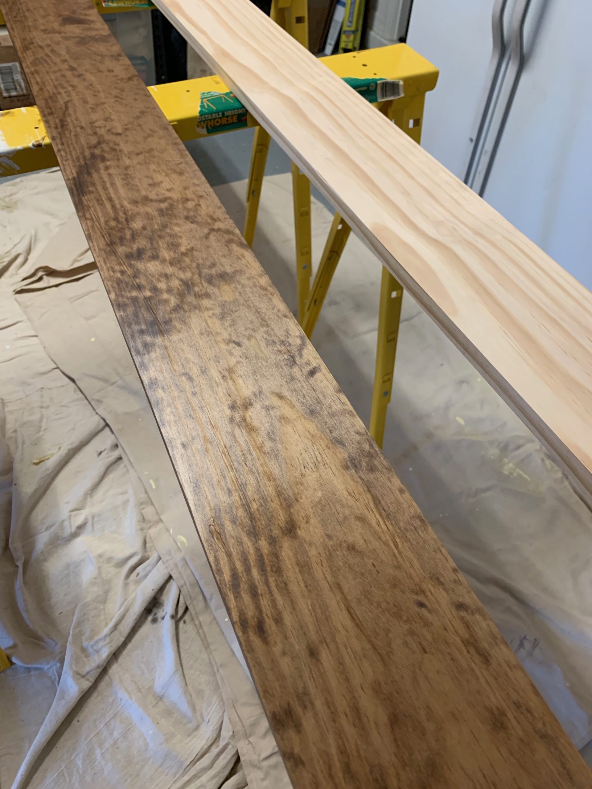 First I lightly sanded the boards and then I stained them with a foam brush.